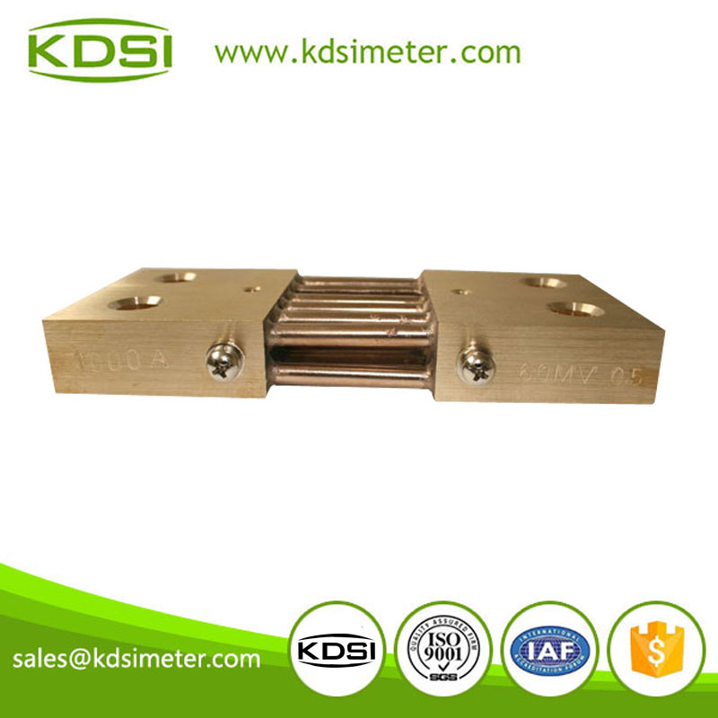 DC shunts are available for currents between 10Amps and 5000Amps, offering reliability and calss0.5,accuracy making them suitable for a large range of industrial applications. Four ranges are available that develop either 50mV, 60mV,75mV,100mV at full load current. The millivolt signal can then be safely taken to suitably scaled moving coil indicating instrument or other monitoring device. The shunts are brass ended manganin and all shunts up to the 200 Amp rating are mounted on an insulted base ensuring electrical insulation. All non-insulated shunts may need protection against accidental contact. The shunts should be mounted vertically with the blade faces vertical to achieve maximum heat dissipation. | |